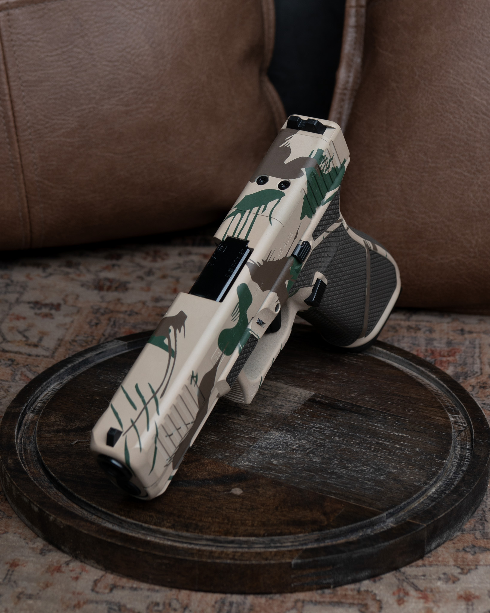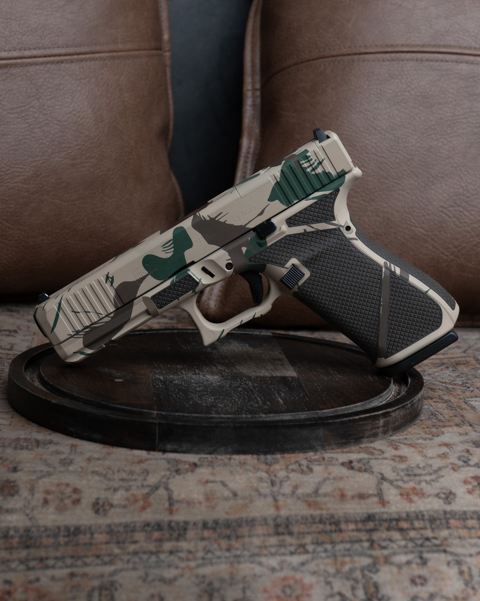 Our Custom Cerakoted Rhodesian Brushstroke Camo Mesh Glock 21 M.O.S.