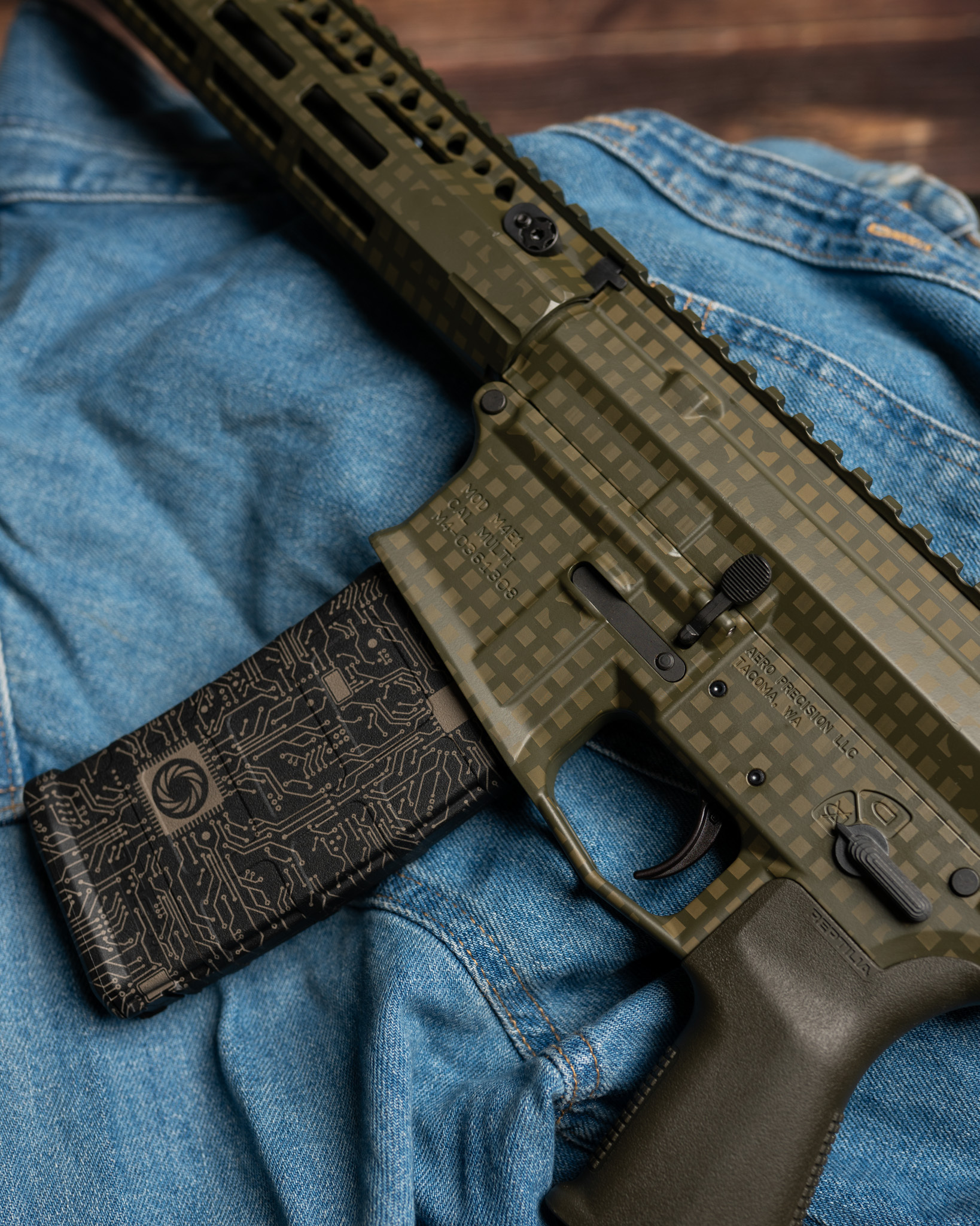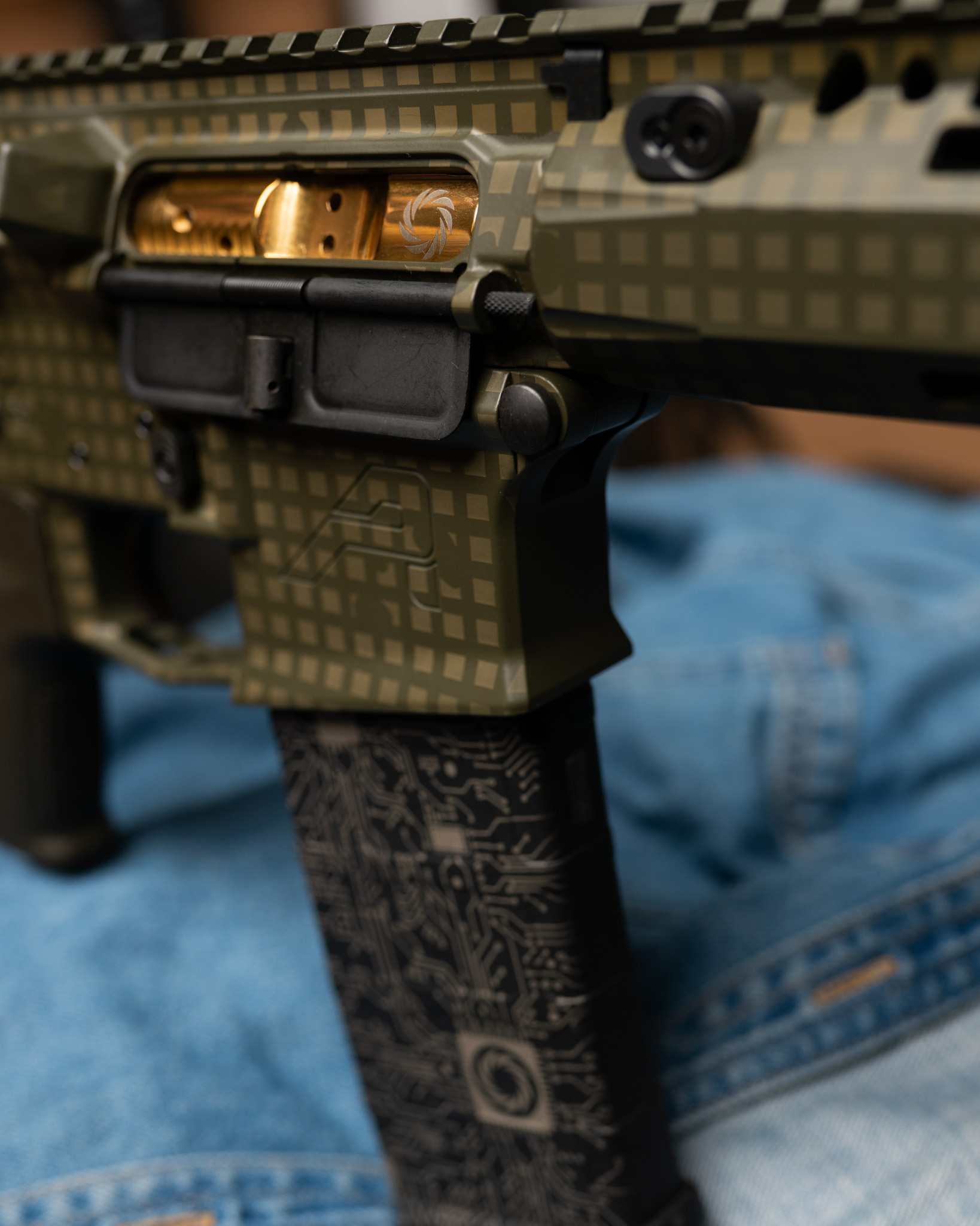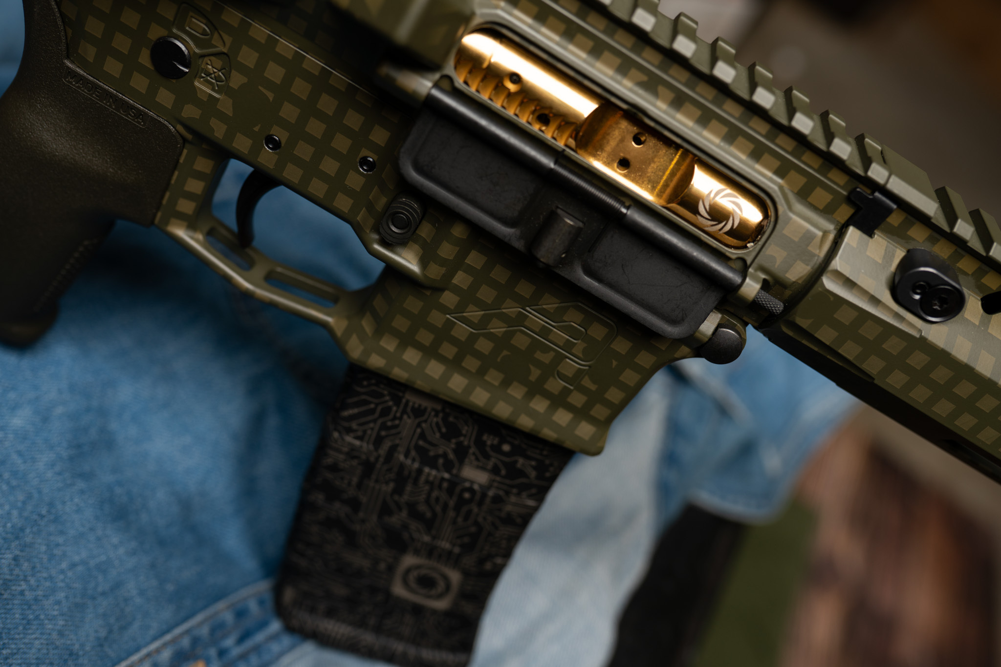 Check our WWLLC Custom Pistol equipped with our DNC camo. Some of materials in this list are: Foward Control Design Keymo muzzle device, BCM handguard, Aero m4e1 Lower and upper receiver, Cryptic BCG, Vltor a5 Buffer system including the new SBA 5 Tactical Brace, also a Gieselle Trigger. Plus, many more features.
